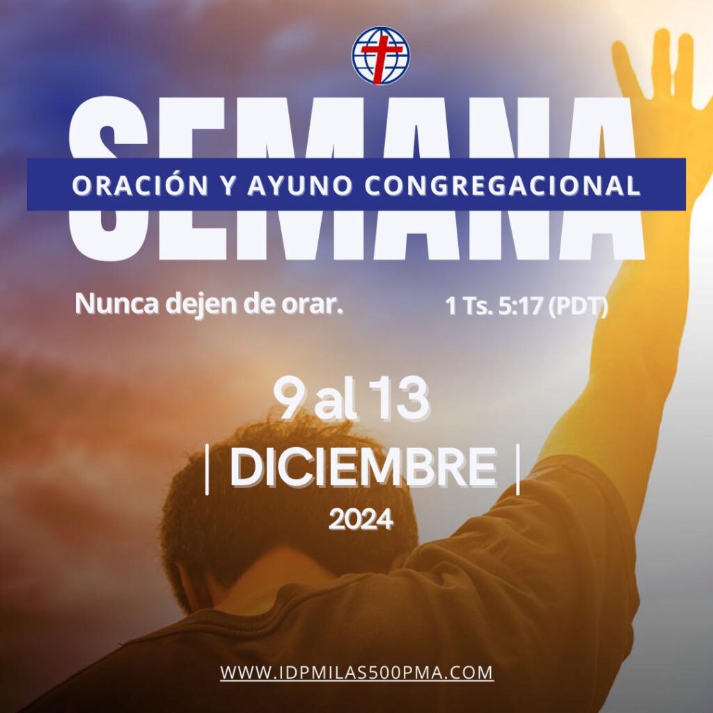 Semana Oración y Ayuno Congregacional diciembre 24, 2024diciembre 13, 2024 por las500 Semana Oración y Ayuno Congregacional / 9 al 13 de diciembre 2024 / Nunca dejen de orar. 1 Ts. 5:17 (PDT)